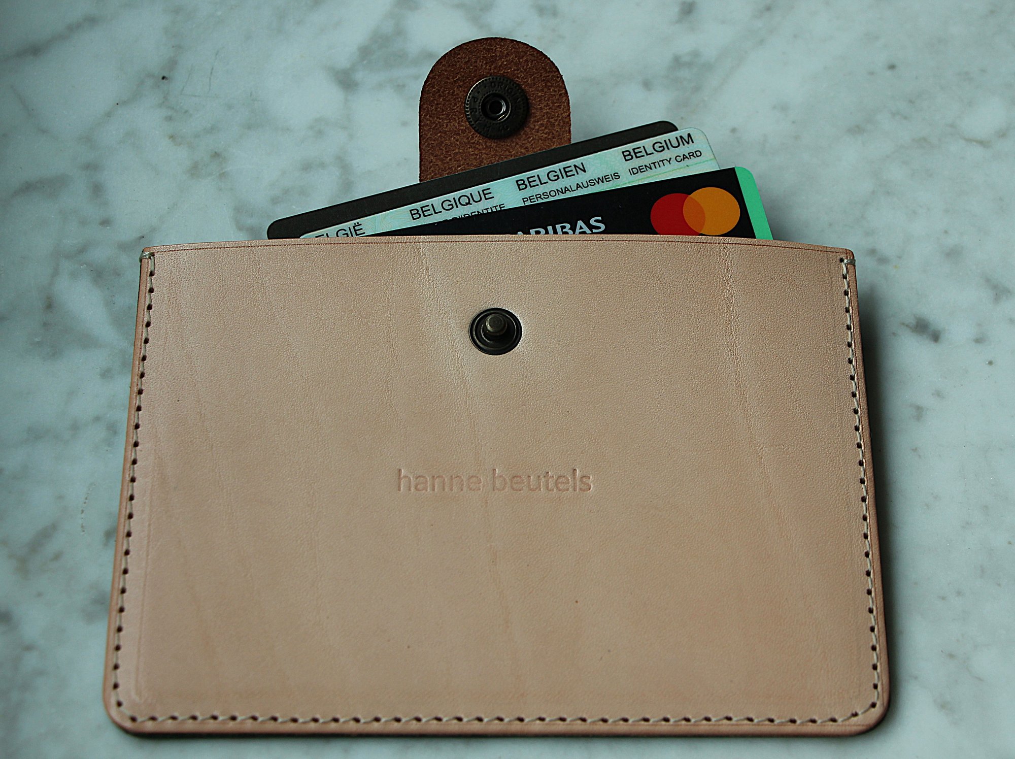 Card holder in two different colours of leather: naturel/green and